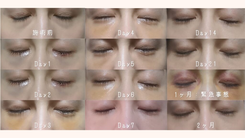 施術後すぐは、正直かなり腫れて目の下の違和感がありました。